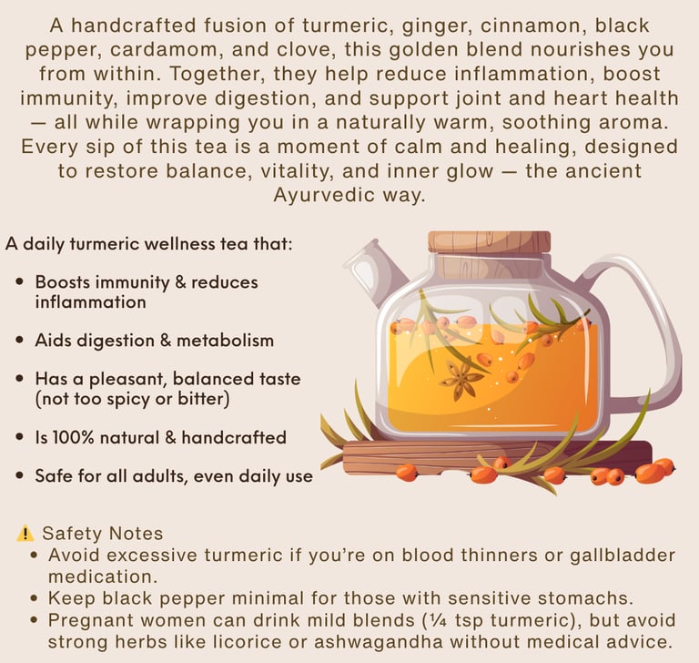 Immunity & Wellness Blend – Curcumin-rich turmeric with warming Ayurvedic spices.